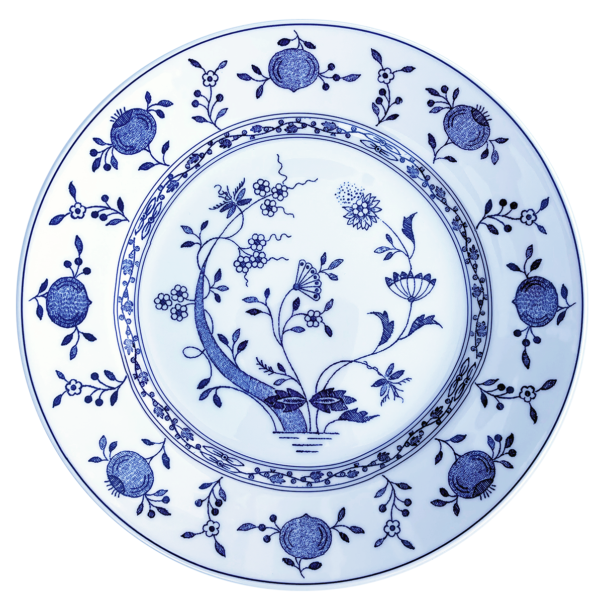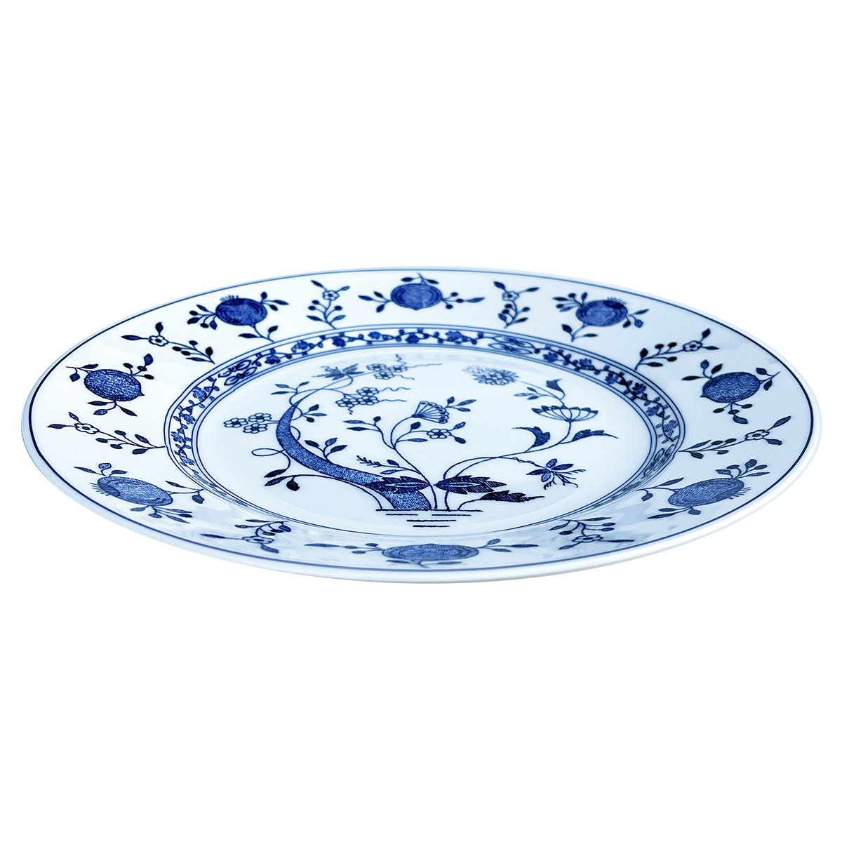 Mattallrik i benporslin med transparent glasyr och dekoren Dresden. Tål maskindisk och mikrovågsugn. C:a 28 cm i diameter.